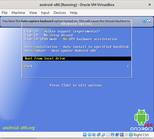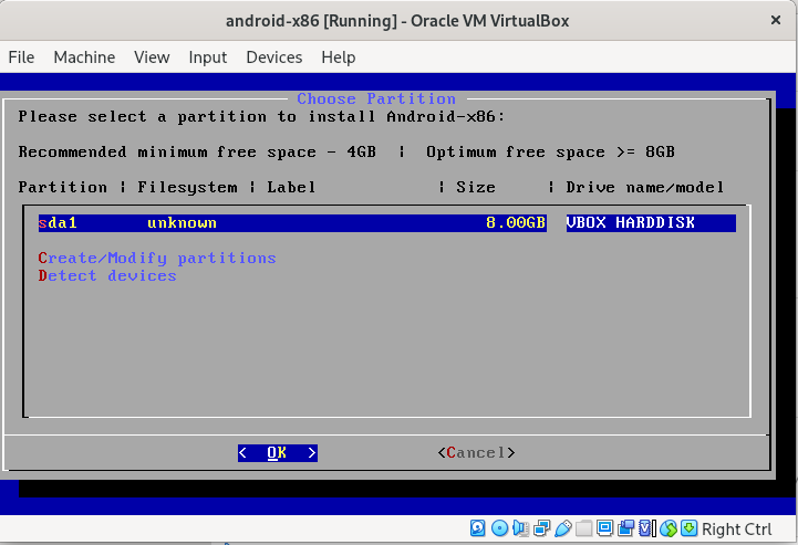 - After booting the first time, I found than 1GB for the Android image was not enough; performance improved a lot after I bumped the ram to 3GB.