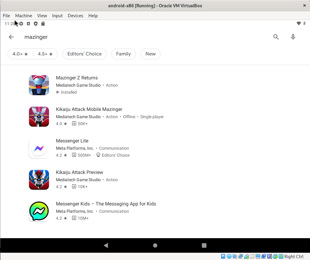 In my case I decided to install a game where I can fight forces of evil as 1970 Mazinger Z/ Tranzor Z (Yes, I love Go Nagai Mazinger Z); to do that we search on the play store and install our game: