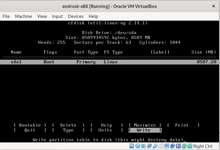 To start the virtual machine, you click the 'Start' button on the GUI, and then you will have to make a few decisions like bootable partition: