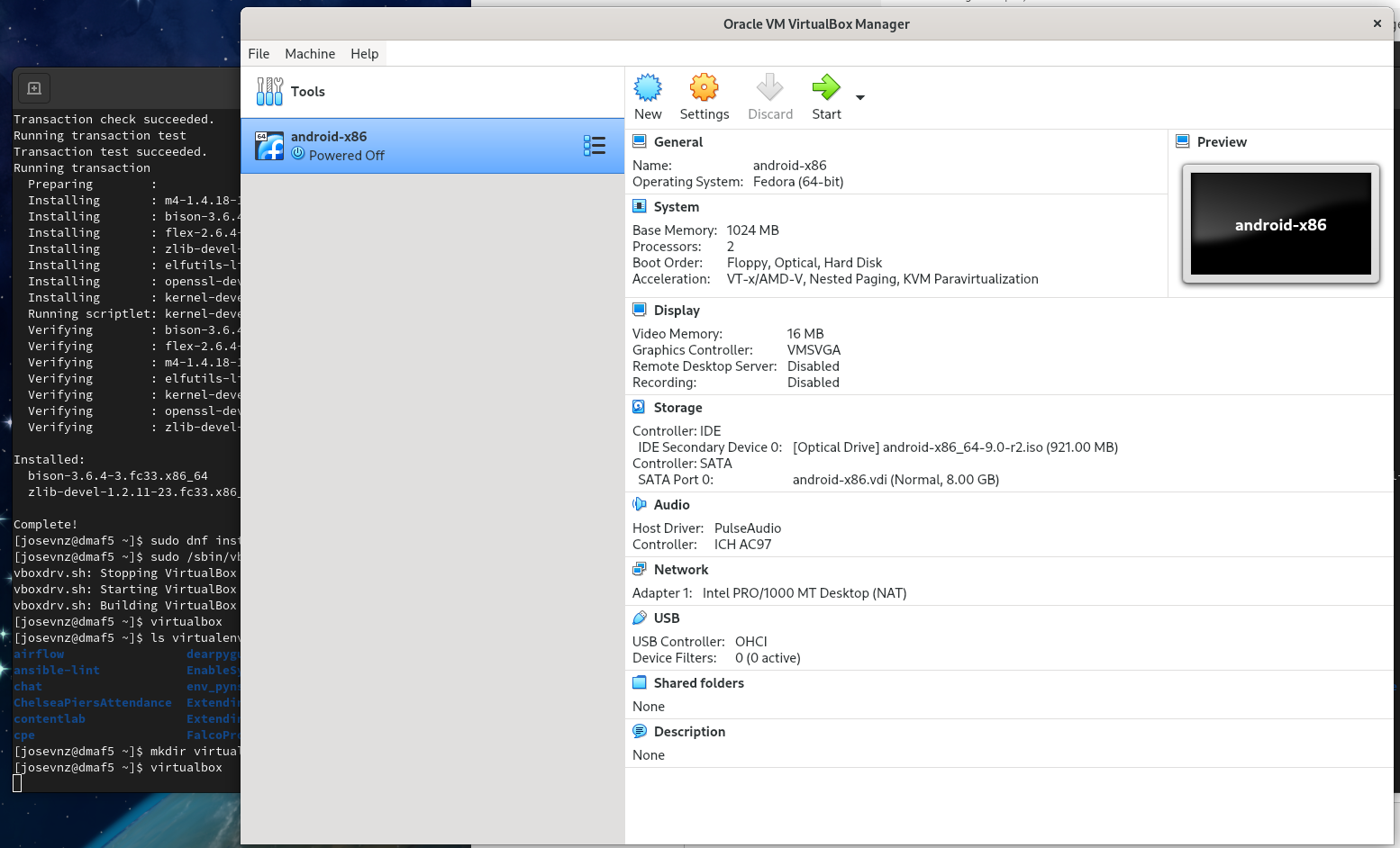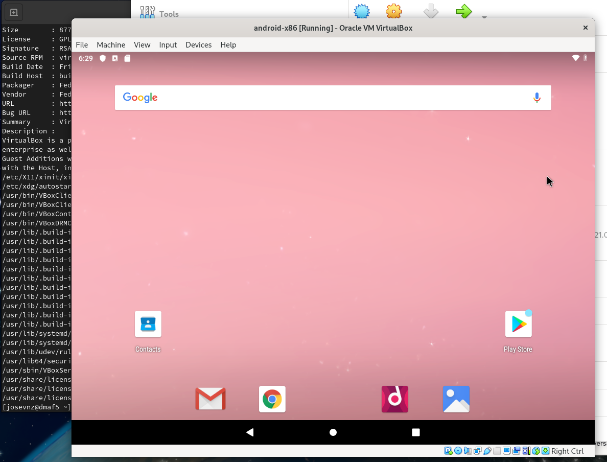- We managed to install a virtual machine engine and ran successfully the Android operating system along with our regular Fedora OS