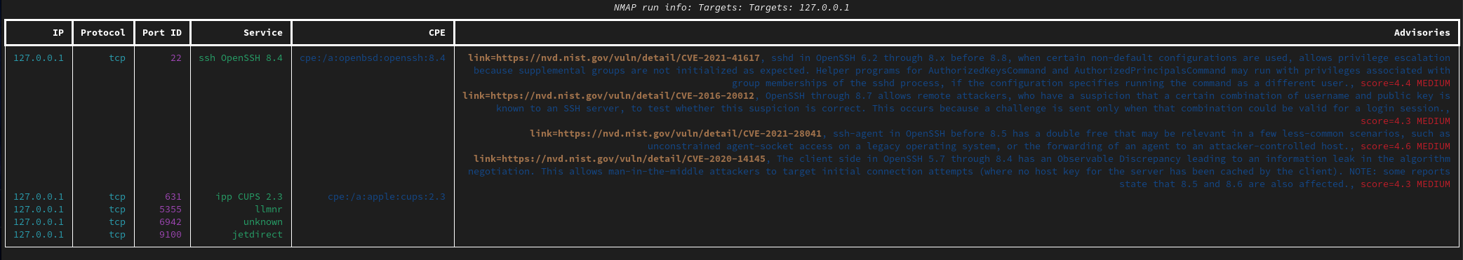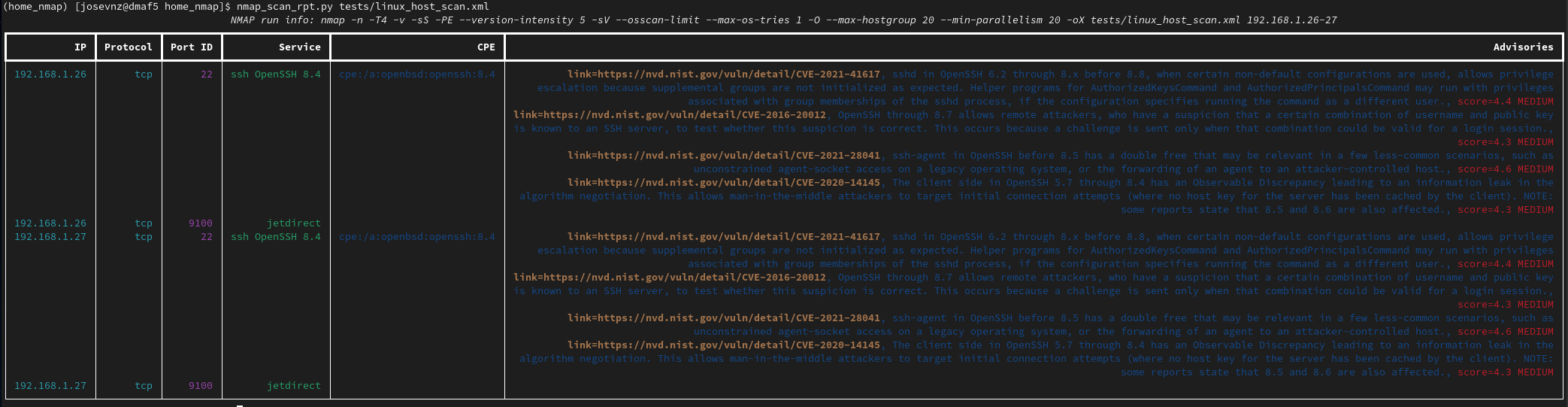 - Parse Nmap XML results file, and enrich it with security advisories from NIST