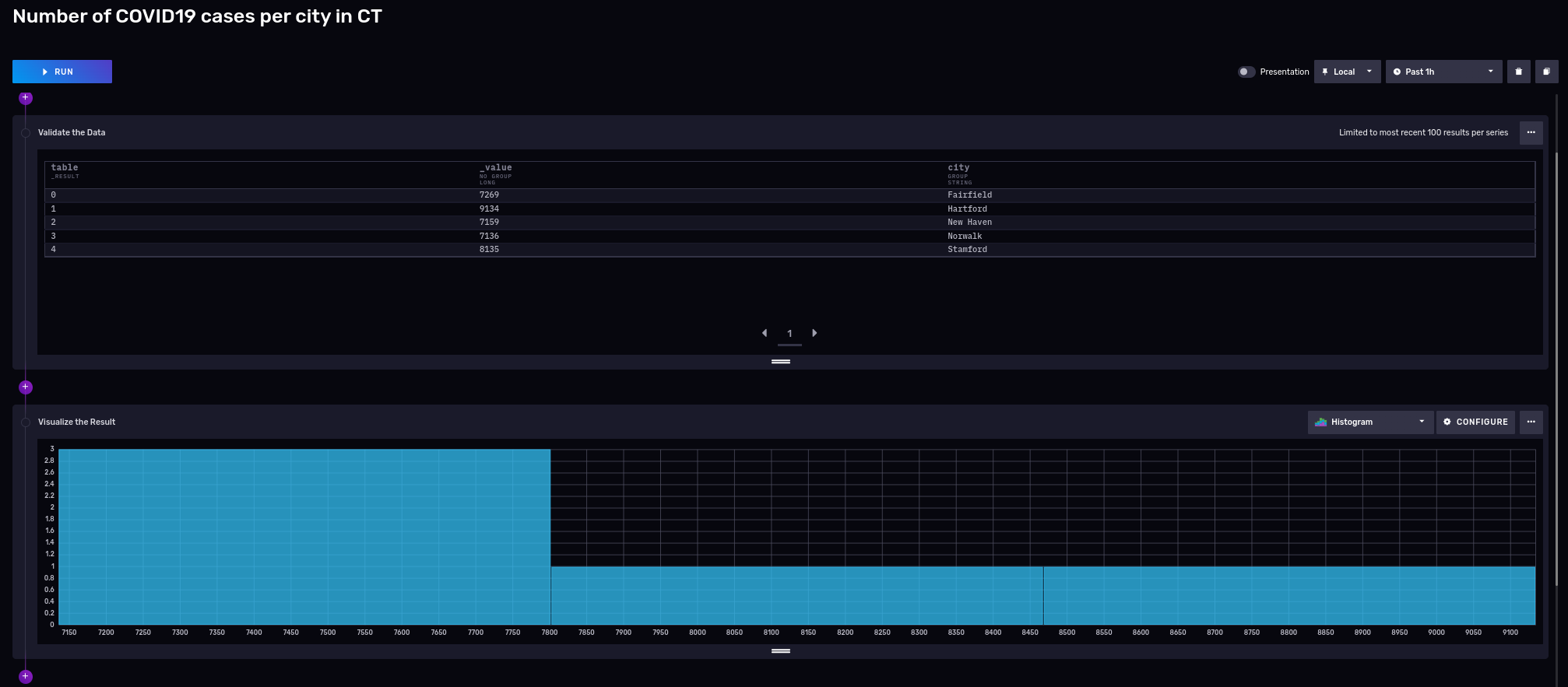 FluxRecord() table: 2, {'result': '_result', 'table': 2, 'city': 'New Haven', '_value': 7159}