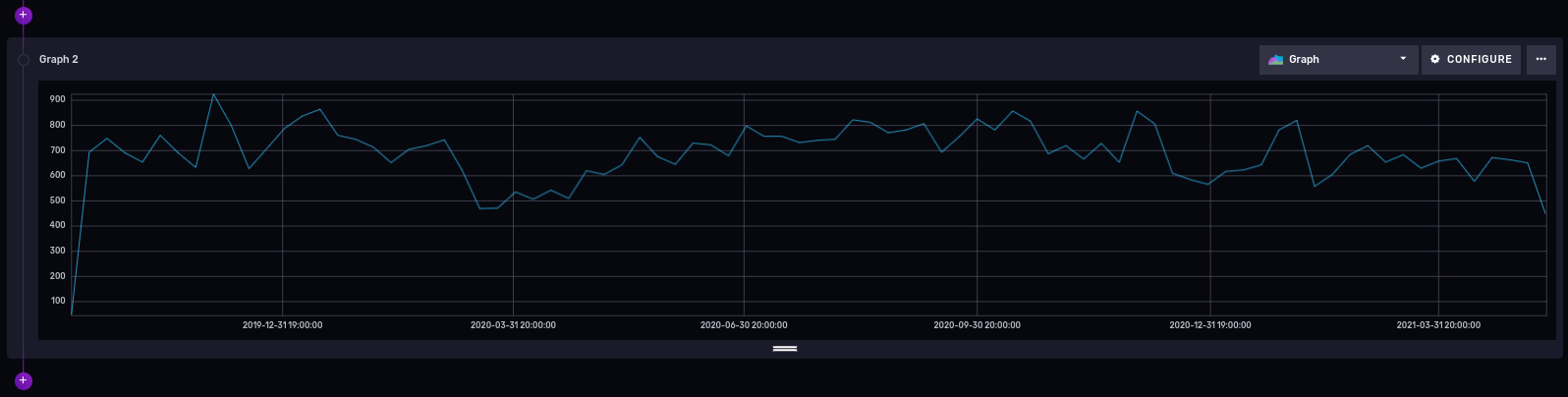 NOTE: It turns out this query takes a long time to run on my tiny Raspberry PI 4 server for anything longer than 4 years; there is a known issue on the UI that terminates your session too soon, so I ended writing a Python client instead for this query: